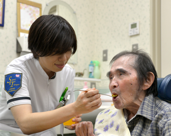 誤嚥の危険が高く経口摂取の困難な場合や食前の嚥下体操などの準備運動や直接的訓練と併せて行う間接的嚥下訓練と、誤嚥にならないよう姿勢や咽頭残留に注意しながら、安全かつ適切な量の食事を段階的に進めて評価する直接的嚥下訓練を行います。